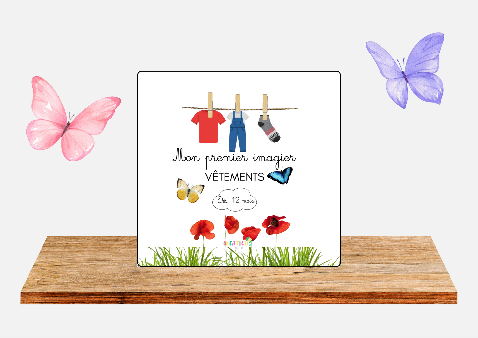 Faites découvrir les vêtements du quotidien à votre enfant, avec cette imagier colorée et ludique de 23 notions, spécialement conçu pour les tout petits des 12 mois, ce support visuel, aide à développer le vocabulaire, la reconnaissance des objets et l’autonomie, tout en sa amusant.